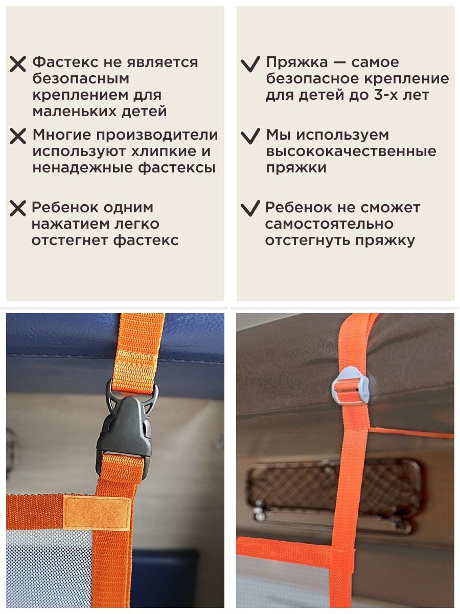 ВНИМАНИЕ! ВСЕ АВТОРСКИЕ ПРАВА НА ИЗДЕЛИЕ ЗАЩИЩЕНЫ! Приспособление позволяет безопасно и комфортно путешествовать родителям, с детьми от 5 лет, в пассажирских вагонах поезда. Легко складывается, в сложенном виде помещается в небольшую сумку. Изделие обрабатывается в стиральной машине. Изобретение дает уникальные возможности родителям и детям в дороге: - комфортный сон родитей и детей на нижней полке; - защита от падения; - безопасная игра; - возможность разместить двух детей на одной полке.