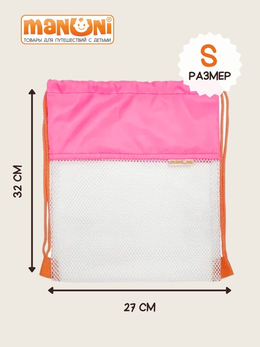 Легкий, практичный, универсальный мешок из сетки, для обуви, вещей, игрушек и мяча. Этот мешок самого маленького размера S, подходит для малышей. Размер мешочка 27х 32 см. Очень удобен для прогулок, так как в него можно сложить бутылочку с водой или одежду. Также идеально подойдет для сменки в садик, бассейн! Занимает мало места, в сложенном виде, в сумке или кармане.